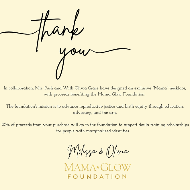 20% of proceeds from this necklace benefit the Mama Glow Foundation’s mission to support and uplift communities through compassionate, culturally responsive care and advocacy for reproductive justice and birth equity.
