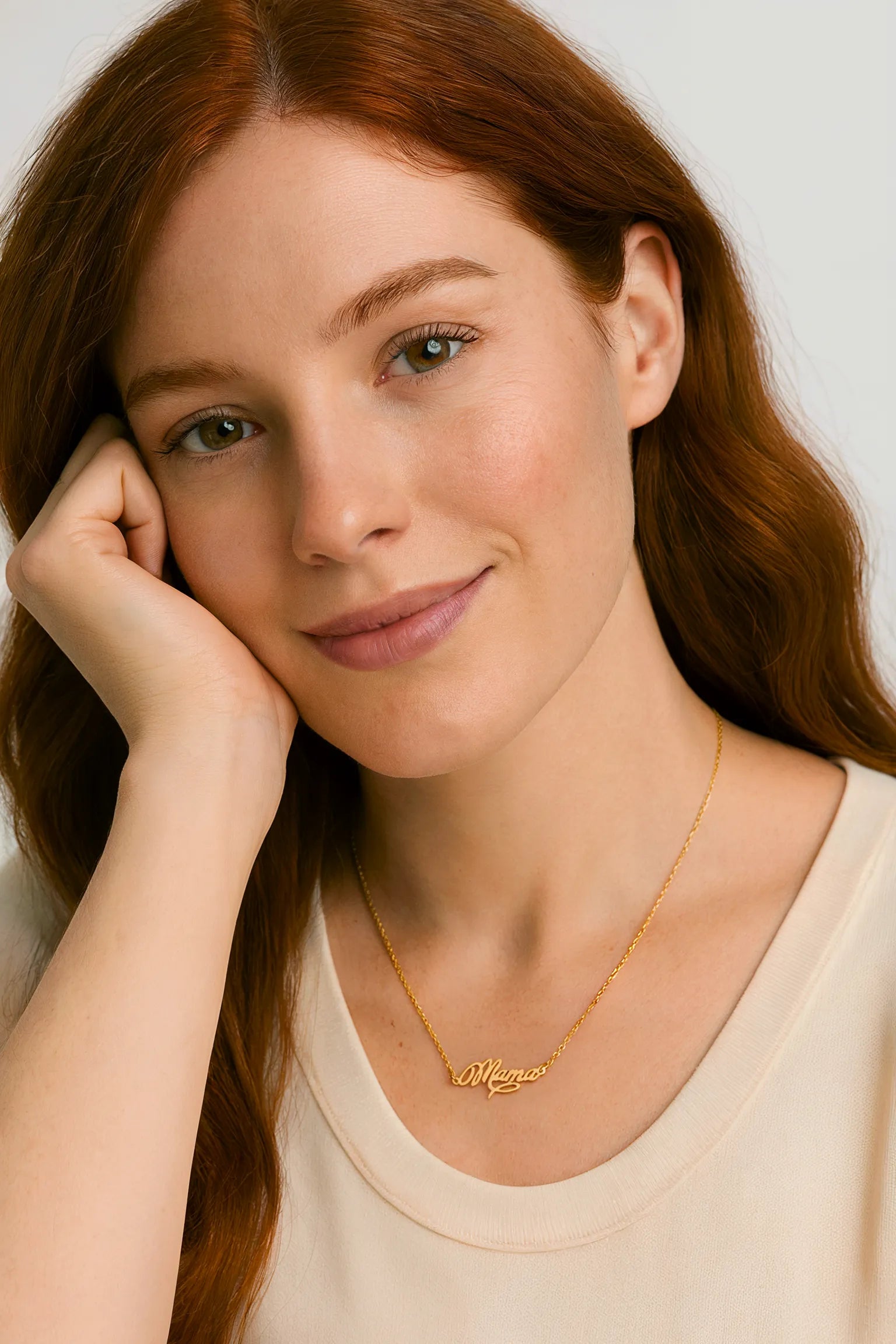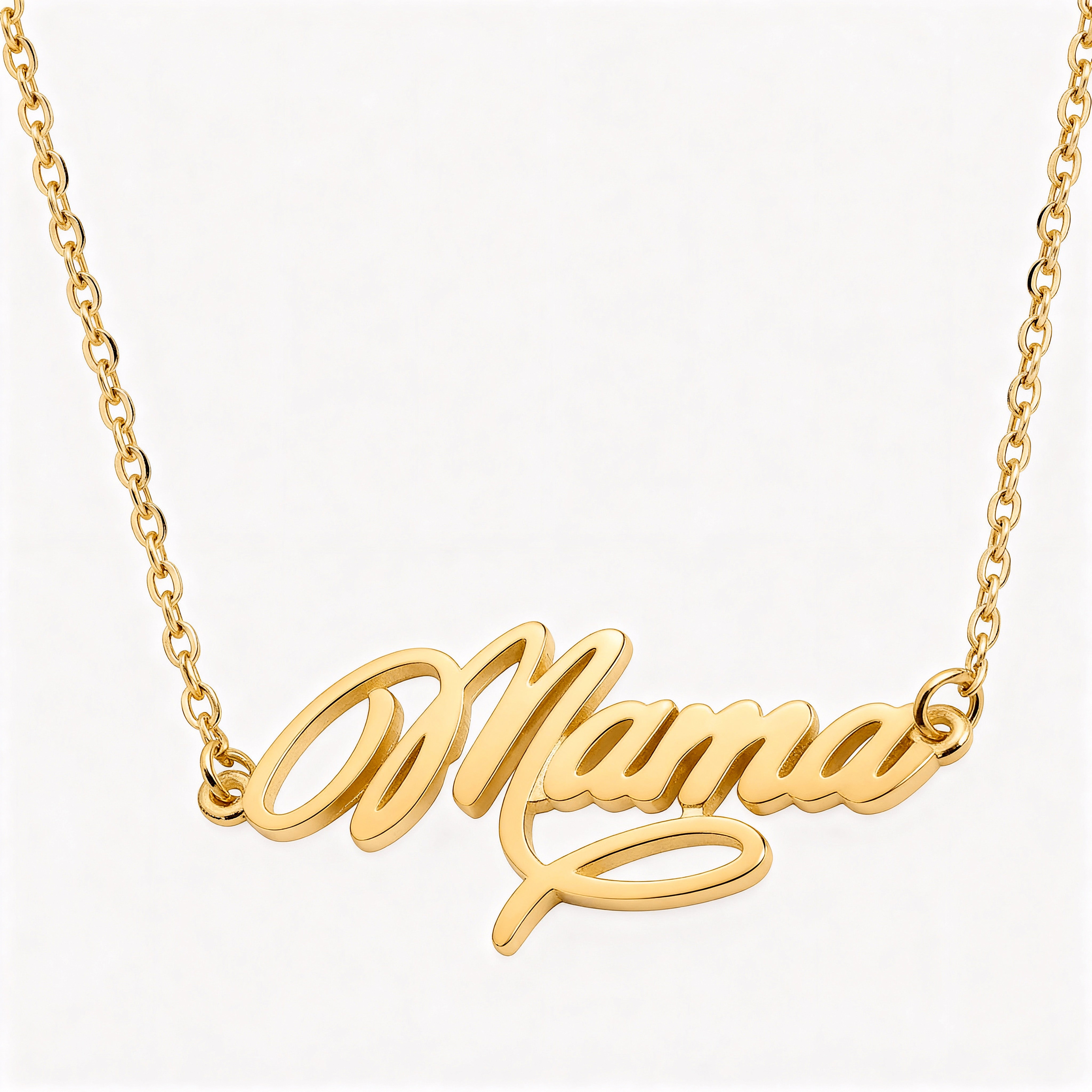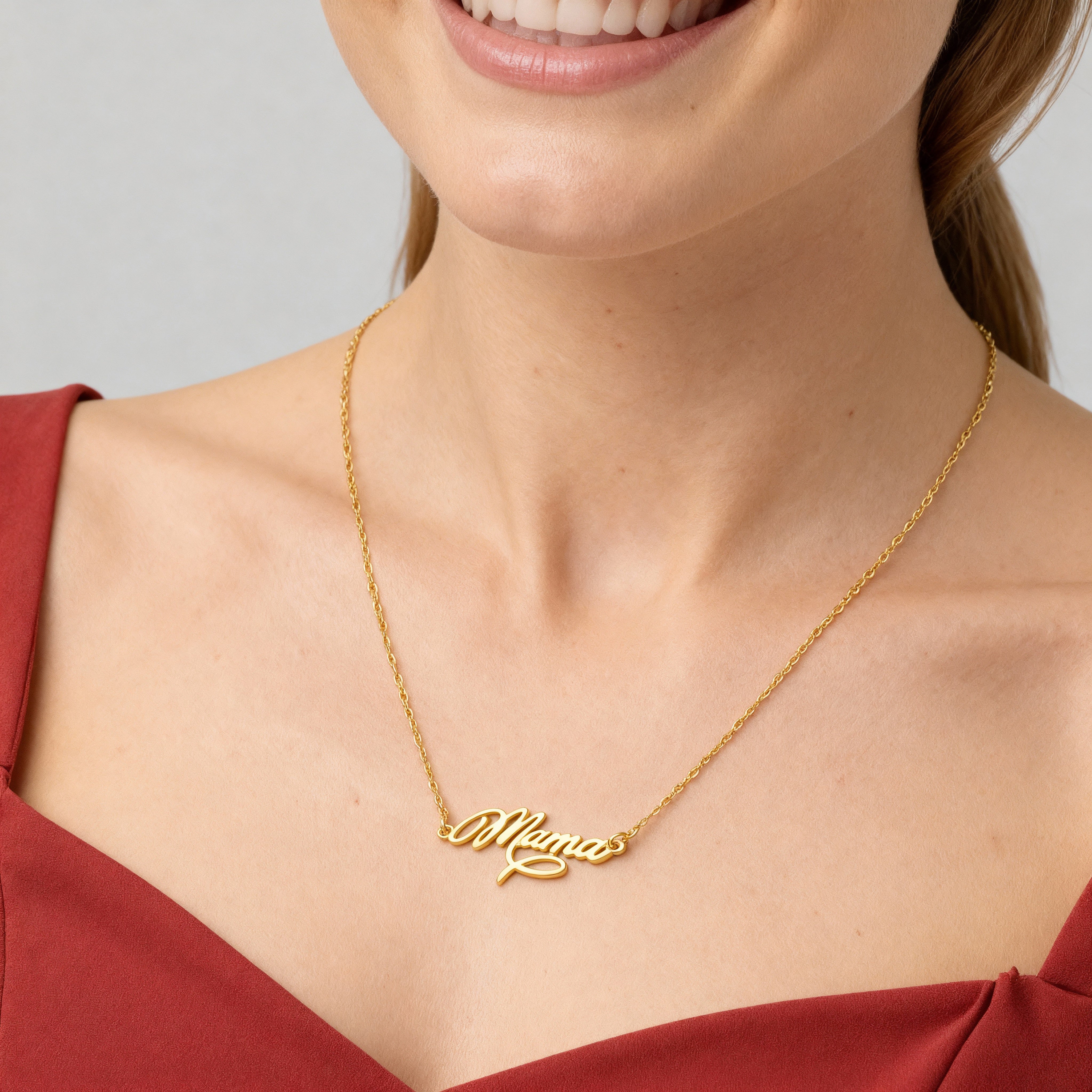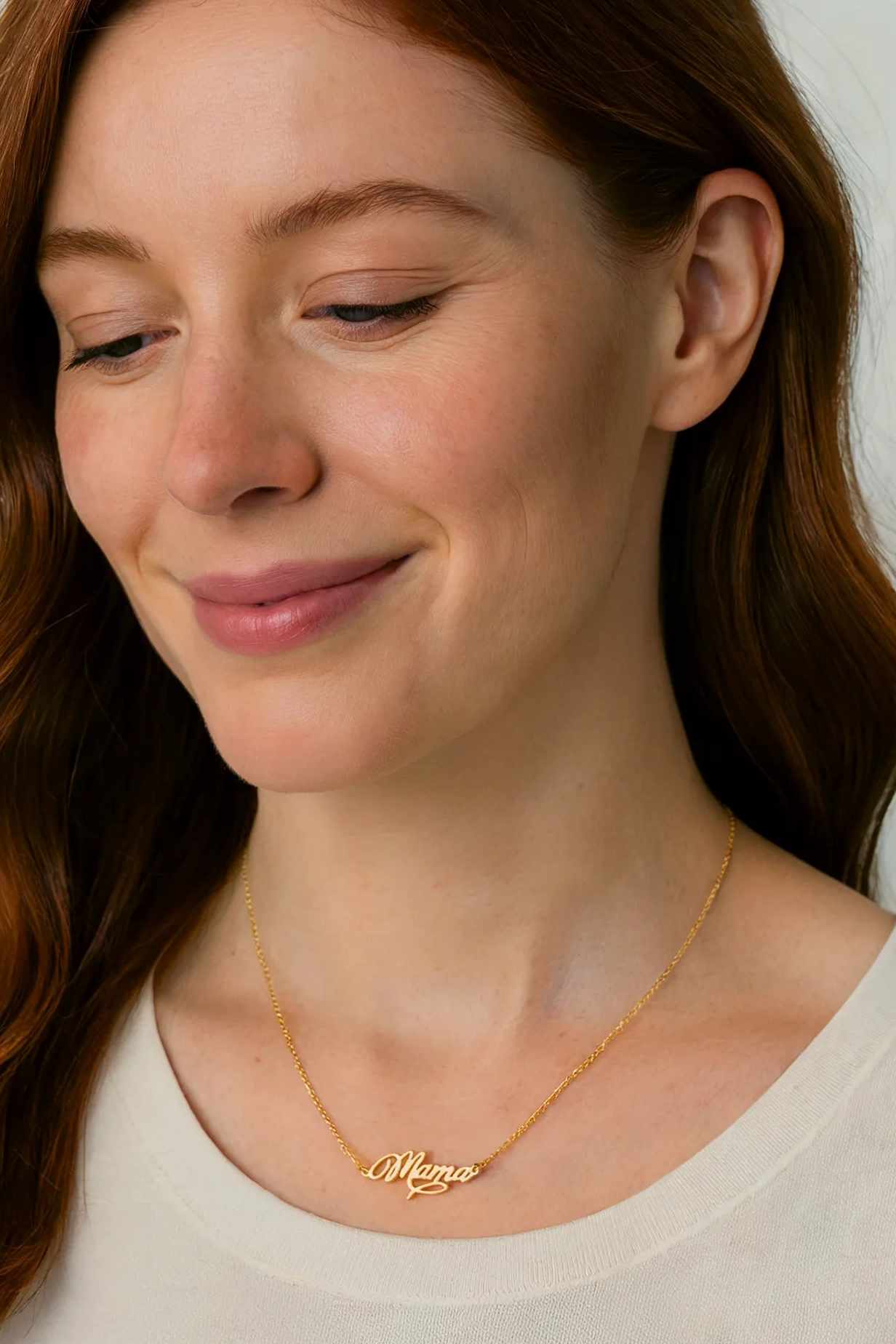 The exclusive Mama Necklace, created in collaboration with Mrs. Push benefiting the Mama Glow Foundation, features a delicate script "Mama" pendant on a sleek chain. Made from solid sterling silver with 18kt yellow gold plating, this necklace is both timeless and meaningful. 20% of proceeds from your purchase will go to the foundation to support doula training scholarships for people with marginalized identities.
