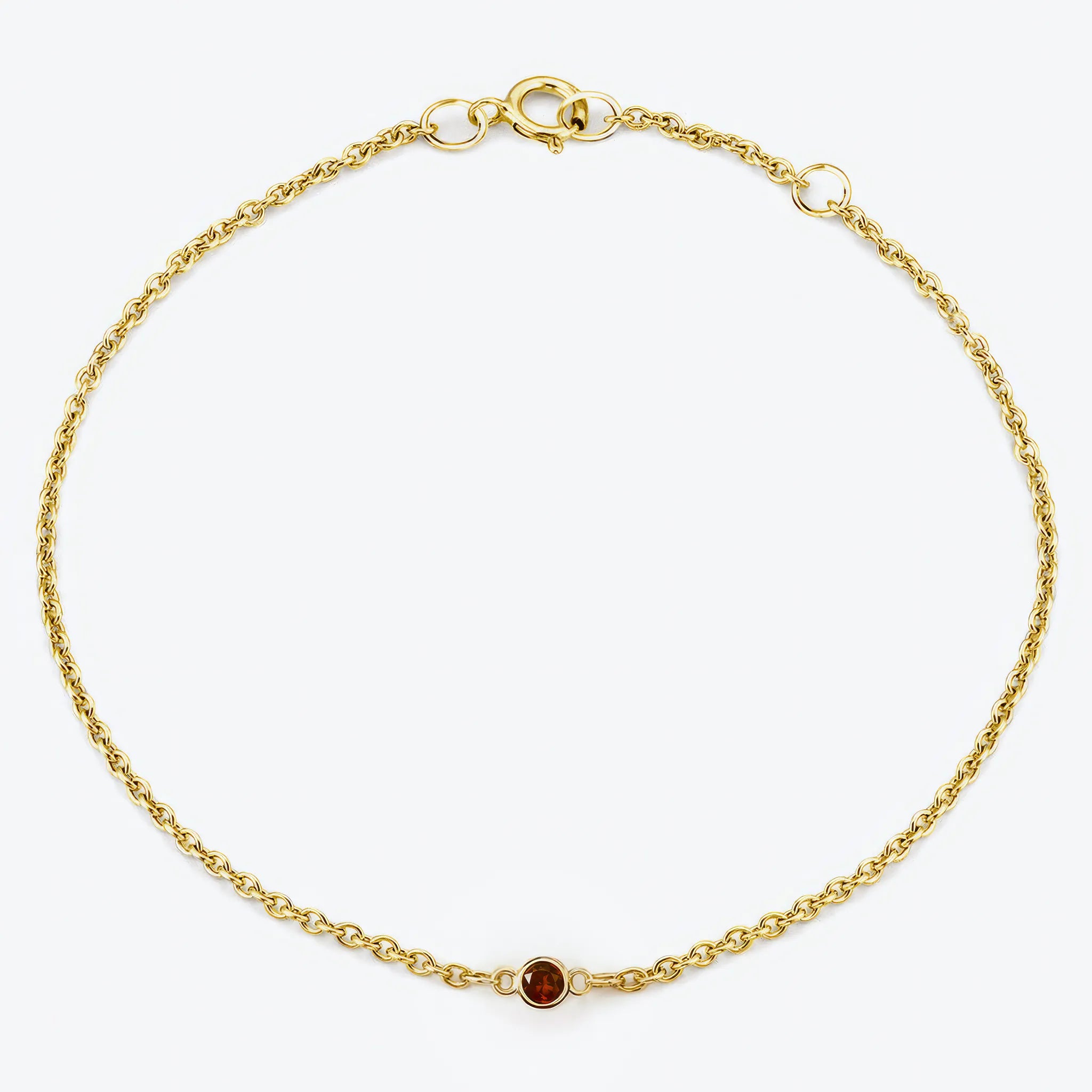 Our simple but universal design makes this bracelet perfect for everyday wear or a special gift for a loved one. Gold encircles a round birthstone with our delicate cable chain bracelet. The bezel- setting helps enlarge the look of the stone. If you are looking for your first gemstone piece, look no further. This is a special stack starter!