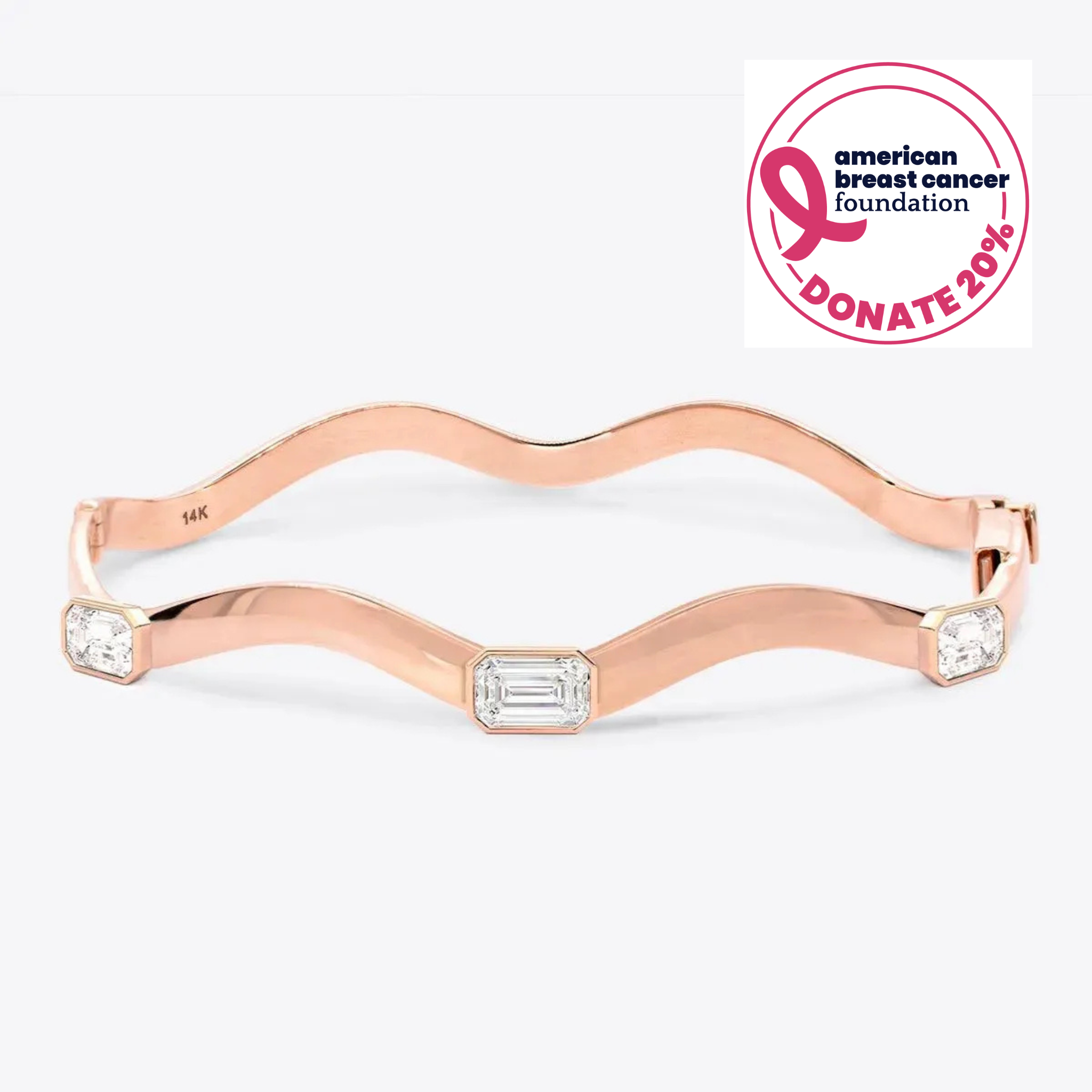 Made with 14K gold, the Taylor Wave Bangle can be customized with a minimal look or a variety of natural- diamond cuts, including round, marquise, emerald, and pear.