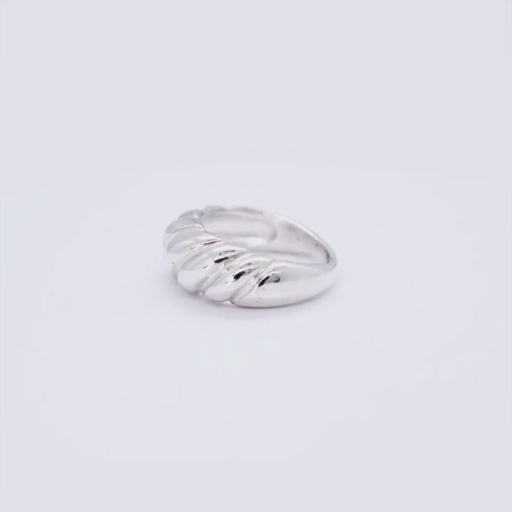 This ring inspired by a croissant silhouette features beautiful curves and delivers a big look. For the biggest impact, we suggest wearing this ring on your index finger and stacking it with a few delicate rings.
