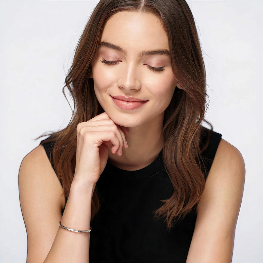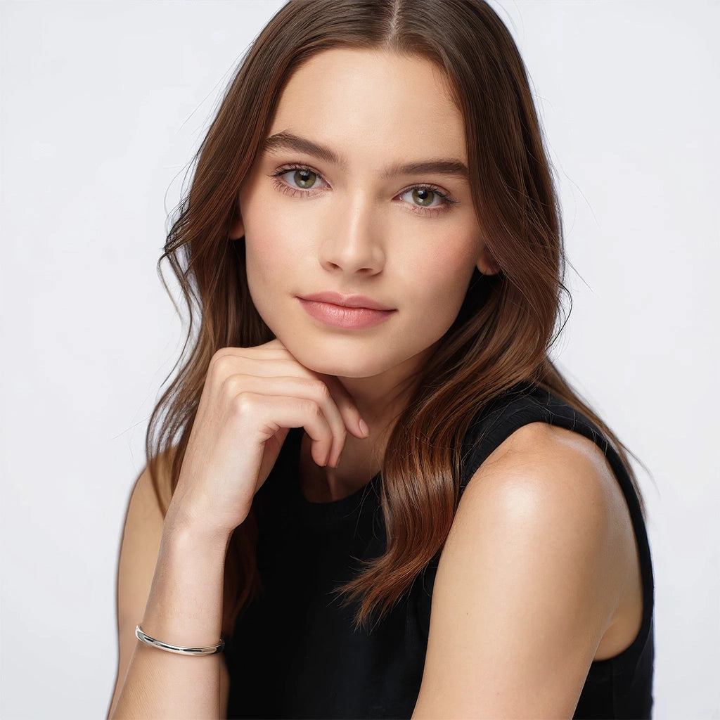 Our bangle bracelet is the perfect finishing touch to your stack. Featuring a timeless silver design, it can be worn for any occasion.