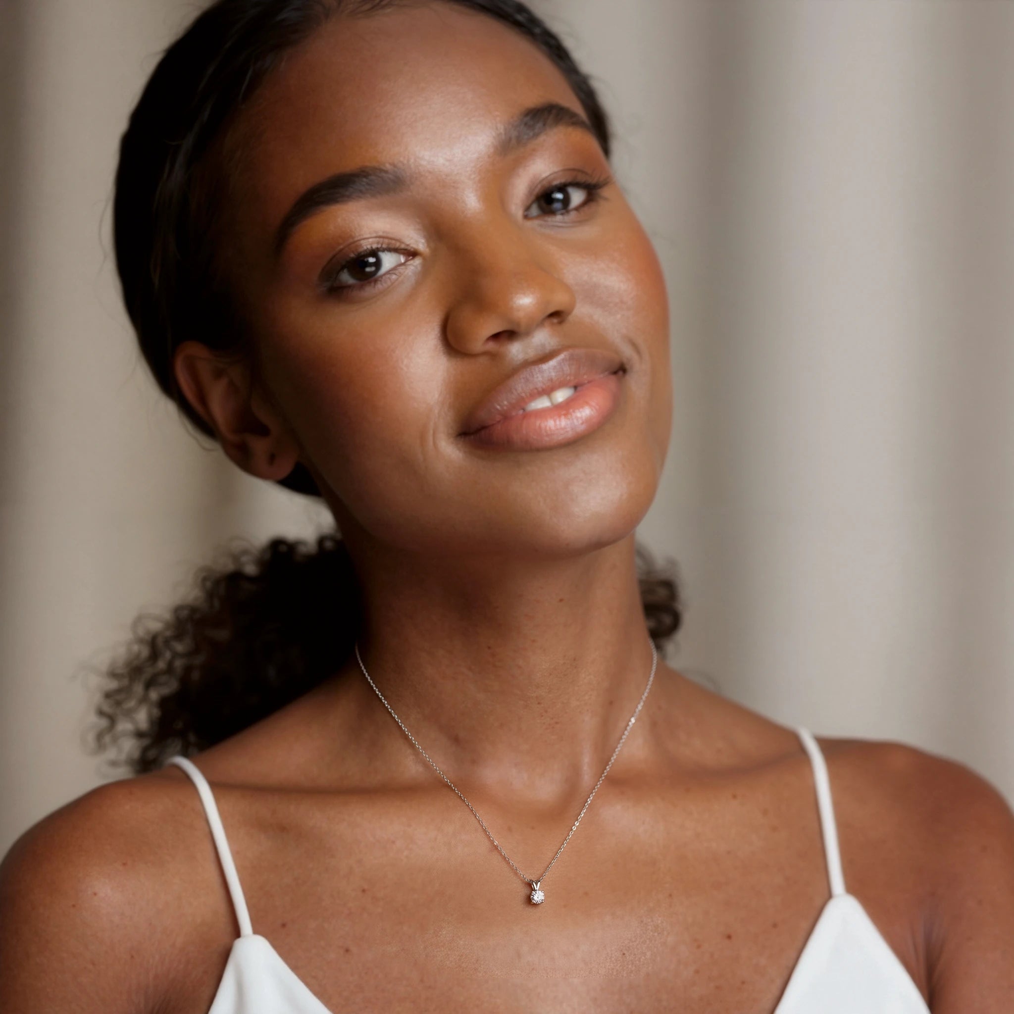 This stunning solitaire necklace features a generous 1/3 carat natural, brilliant diamond strung onto a delicate chain. Versatile and sophisticated; it is a stunning necklace.